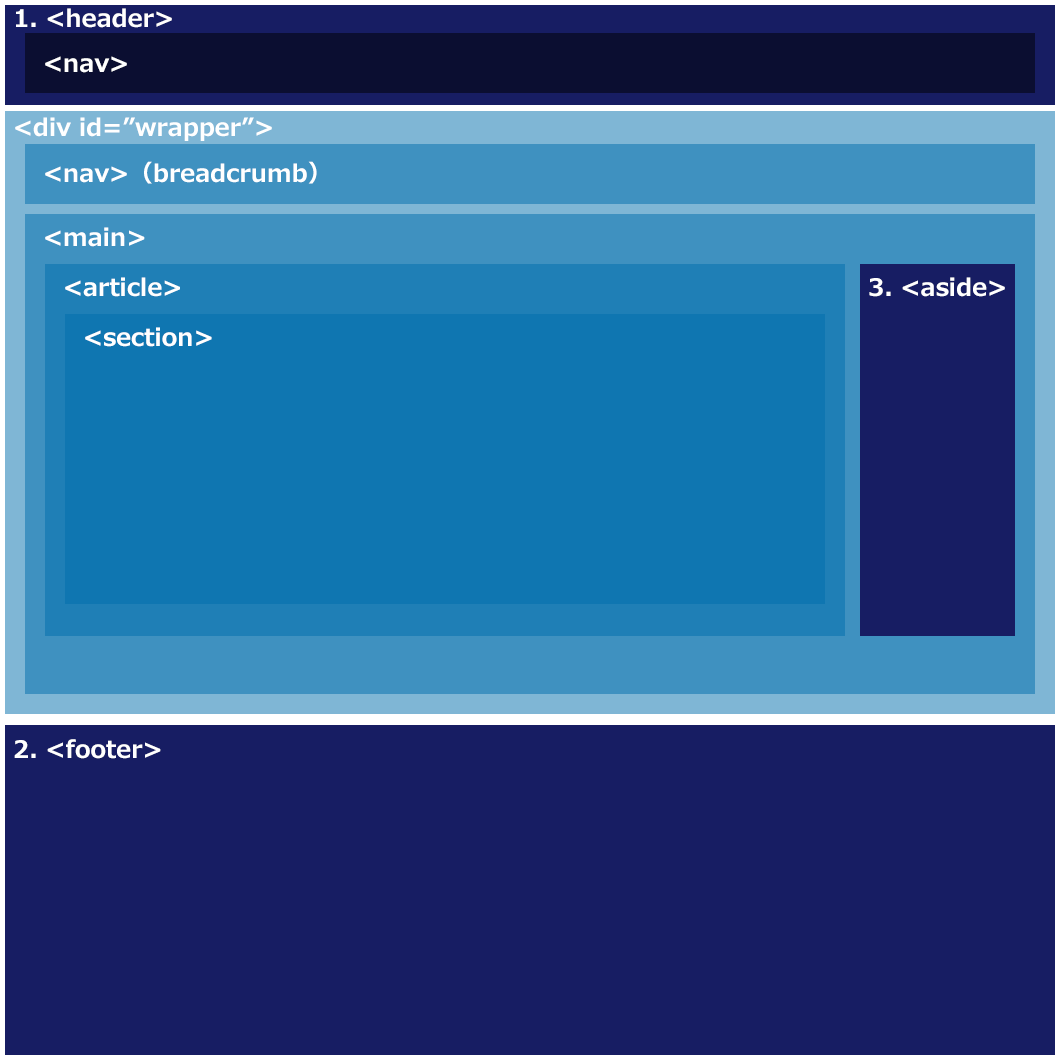 | ヘッダー | /templates/header.html | 1.<header> | {include file='header.html'} |